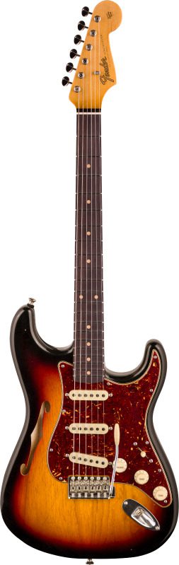 Postmodern Strat® – Journeyman Relic® with Closet Classic Hardware – Rosewood ($5,050.00 USD, £4,899.00 GBP, €5,599.00 EUR, $8,199.00 AUD, ¥759,000 JPY) The unique combination of appointments featured on the Postmodern Strat® Journeyman Relic® with Closet Classic hardware brings both vintage enthusiasts and modern players together. Tastefully crafted with a lively and resonant select ash thinline body, quartersawn maple neck with ’60-style Oval “C” back-shape, round-laminated rosewood fingerboard and contoured heel, this Strat® is sure to stun players and audiences in its Journeyman Relic® lacquer finishes—available in Three-Color Sunburst, Aged White Blonde and Aged Natural. Loaded with a set of Custom Shop hand-wound Master Design “Bone-Tone” Strat® pickups, this instrument delivers all the clarity, sparkle and full-bodied tone players have come to expect from top-tier Stratocaster® guitars. Other premium features include 9.5″ to 12″ compound radius, 21 narrow tall (6105) frets, Vintage Modified #2 wiring with Tone-Saver Bleed and Greasebucket™ tone circuit, 5-way switch, 4-ply brown shell pickguard, Custom Shop vintage synchronized tremolo, vintage-style tuning machines, Dunlop Straplok strap buttons, bone nut, wing string tree with tall metal spacer, deluxe hardshell case, strap and certificate of authenticity.
