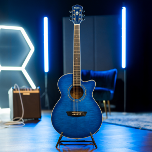 Washburn Guitars, an American original since 1883, proudly introduces the Festival EA15 in a stunning Transparent Blue finish. Like all the guitars in the acclaimed Festival Series, it comes equipped with Barcus-Berry electronics for exceptional tone.